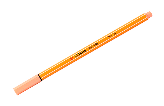 Шестигранный корпус, жесткий фломастерный кончик. Металлический наконечник, который защищает пишущий узел позволяет работать с линейкой, не оставляя на ней следов чернил.