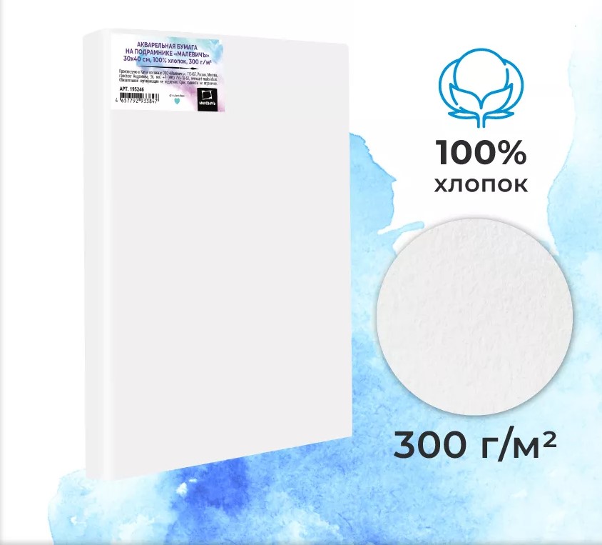 Высококачественная акварельная бумага является обязательным для всех художников и любителей акварельной живописи. Изготовленная из 100% хлопка, отлично держит воду, стойка к вымыванию и стиранию. Благодаря своему составу эта бумага гарантирует, что цвета останутся яркими и не пожухнут. Хлопковая бумага обеспечивает отличные возможности для смешивания оттенков, долго удерживает влагу. Может выдерживать несколько слоев краски без деформации или изгиба.