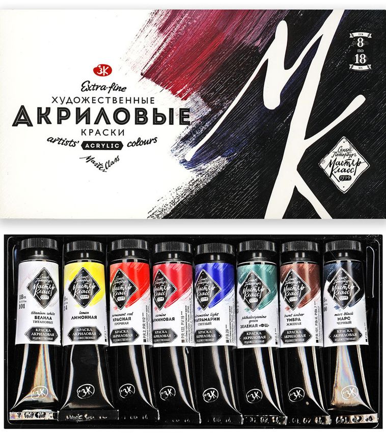 Художественные акриловые краски серии «Мастер-Класс» разработаны специально для профессиональных художников, в них соединились традиции производства с инновационными разработками. Высокая насыщенность пигментом и минимальное содержание наполнителей позволяют сохранить блеск, интенсивность и глубину цвета после высыхания, а тщательно сбалансированная основа придает краске богатую текстуру и корпусность.