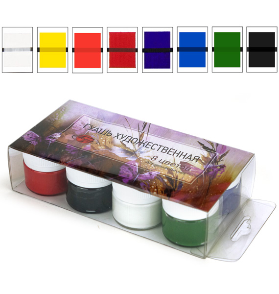 Гуашь производства компании «Таир» изготавливается на основе растительного клеевого состава с добавлением красящих пигментов. Применяется для живописи, декоративно-прикладного творчества, дизайнерских и оформительских работ. Краска обладает высокой степенью укрывистости, размывается водой. При высыхании приобретает бархатистый матовый оттенок.