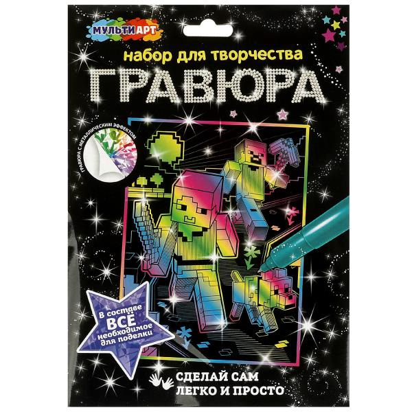 С помощью данного набора юный художник сможет создать эффектную картину на чёрном фоне. Контур рисунка уже нанесён на основу, остаётся только процарапать изображение специальным штихелем. Готовую поделку можно подарить близким или использовать для украшения интерьера.